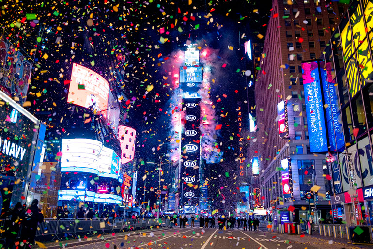 Στη Νέα Υόρκη, όπου συνήθως η Times Square είναι γεμάτη ενθουσιασμένους ανθρώπους που γιορτάζουν υπό βροχή κομφετί, η συνοικία του Μανχάταν ήταν αποκλεισμένη και οι αρχές ζήτησαν από τους κατοίκους της πόλης να παρακολουθήσουν την αντίστροφη μέτρηση ως την έλευση του νέου έτους στις τηλεοράσεις τους. Η διάσημη τραγουδίστρια της ντίσκο Γκλόρια Γκέινορ, 77 ετών, τραγούδησε το γνωστό τραγούδι της “ I will survive”.