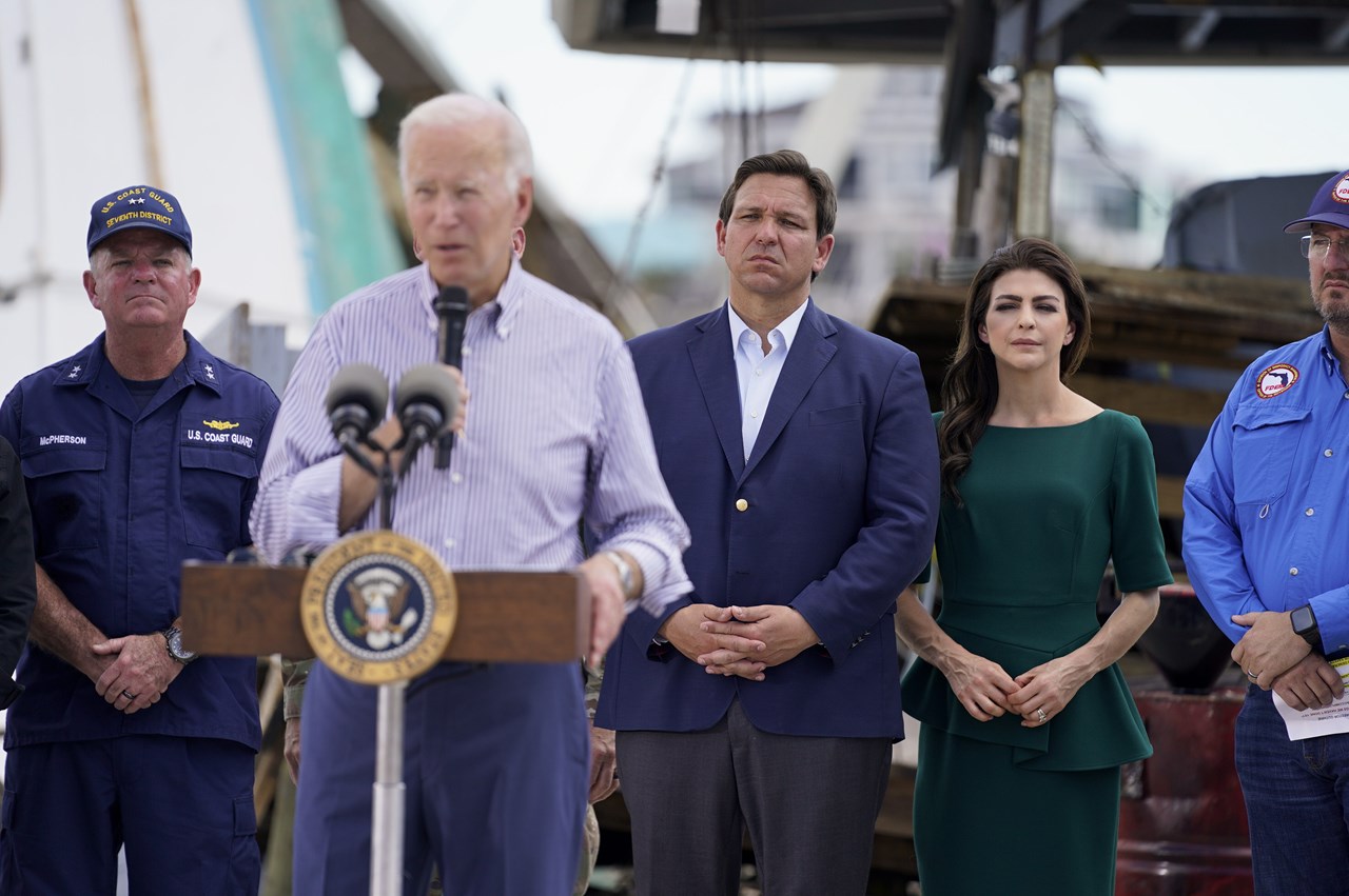 Ο Ντε Σάντις και η σύζυγός του Κέισι υποδέχθηκαν τον Τζο Μπάιντεν και την πρώτη κυρία Τζιλ στο Φορτ Μάγερς. Προηγουμένως το προεδρικό ζεύγος είχε πετάξει με ελικόπτερο πάνω από τις πληγείσες περιοχές.
