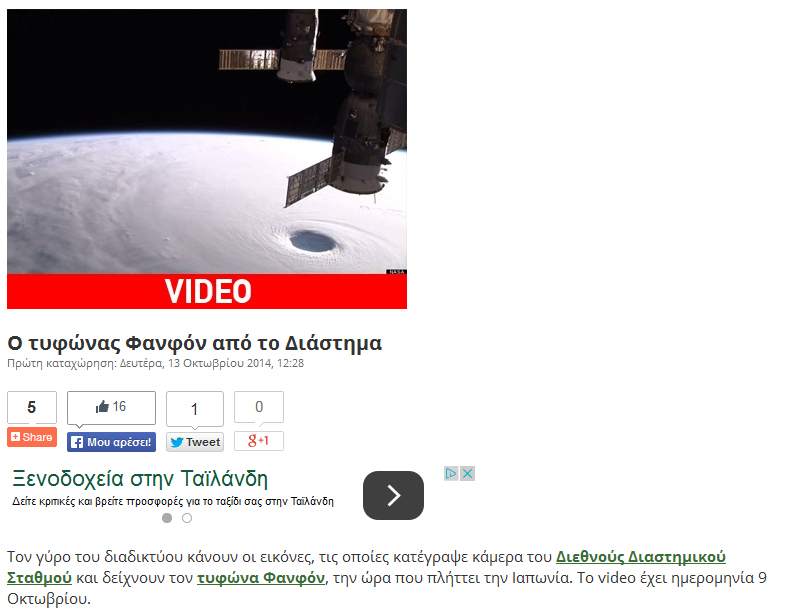 Ο τυφώνας Σουντελόρ πλήττει τις τελευταίες ώρες την Ταϊβάν, προκαλώντας τον θάνατο τουλάχιστον δύο ανθρώπων και αφήνοντας χωρίς ρεύμα περίπου 2 εκατ. κατοικίες. Κάμερα στον Διεθνή Διαστημικό Σταθμό (ISS) κατέγραψε το φυσικό φαινόμενο, όπως αυτό φαίνεται από το Διάστημα.