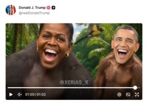 Το βίντεο στο οποίο ο πρώην πρόεδρος Μπαράκ Ομπάμα και η σύζυγός του Μισέλ εικονίζονται σαν πίθηκοι αποσύρθηκε από τον λογαριασμό του Ντόναλντ Τραμπ στην πλατφόρμα Truth Social, αφού παρέμεινε αναρτημένο επί περίπου 12 ώρες.