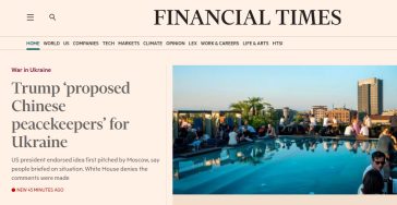 Την αποστολή ειρηνευτικών δυνάμεων της Κίνας στην Ουκρανία, προτείνει ο Αμερικανός πρόεδρος Ντόναλντ Τραμπ, σύμφωνα με δημοσίευμα των Financial Times.