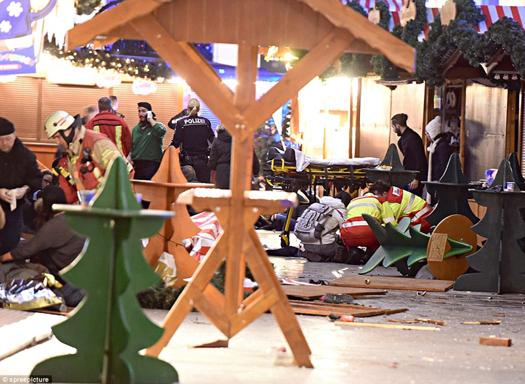 Το αιματηρό συμβάν εκτυλίχθηκε στις 20.00 το βράδυ της Δευτέρας (τοπική ώρα), στην τοποθεσία Breitscheidplatz, με αποτέλεσμα τον θάνατο 12 ανθρώπων και τον τραυματισμό τουλάχιστον 48. Ο αρχικός απολογισμός έκανε λόγο για 9 νεκρούς. Σύμφωνα με γερμανικά ΜΜΕ, από τους τραυματίες τέσσερις νοσηλεύονται σε κρίσιμη κατάσταση. Έπειτα από ώρα η αστυνομία εντόπισε και συνέλαβε τον οδηγό του φορτηγού, ο οποίος και ανακρίνεται, ενώ σύμφωνα με πληροφορίες μεταξύ των νεκρών είναι και ο συνοδηγός του οχήματος.