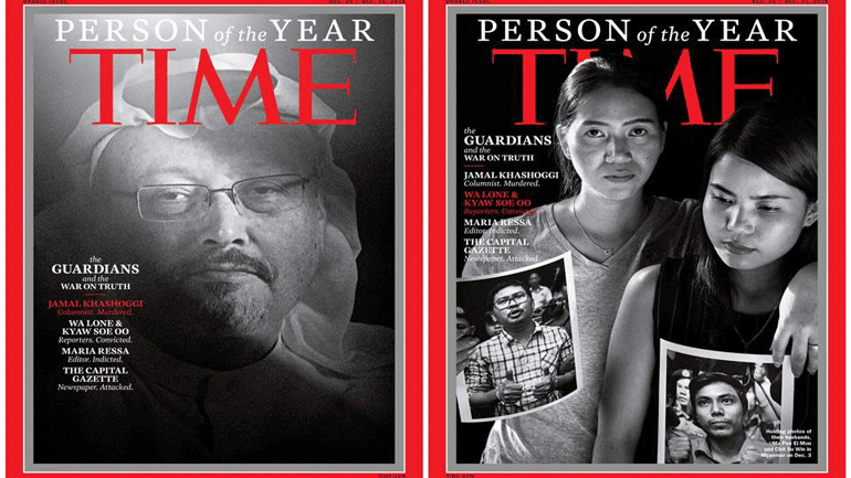 Εκτός από τον Τζαμάλ Κασόγκι, το εβδομαδιαίο περιοδικό τίμησε ως προσωπικότητες της χρονιάς τη φιλιππινέζα δημοσιογράφο Μαρία Ρέσα, τους δύο βιρμανούς ρεπόρτερ του πρακτορείου Ρόιτερ Ουά Λόουν και Κέι Σου Όου, που βρίσκονται αυτή τη στιγμή στη φυλακή, καθώς και τη σύνταξη της αμερικανικής τοπικής εφημερίδας Capital Gazette, πέντε μέλη της οποίας έχασαν τη ζωή τους στη διάρκεια επίθεσης που πραγματοποιήθηκε στις 28 Ιουνίου στην Ανάπολη της Πολιτείας του Μέριλαντ.