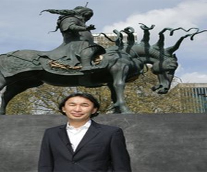 Είναι έργο του Ρώσου γλύπτη, Ντάσι Ναμντάκοφ και δείχνει τον ισχυρό άνδρα της Μογγολίας να ιππεύει ένα άλογο το οποίο κατεβαίνει από τον ουρανό. Ο ίδιος ο καλλιτέχνης ανέφερε πως η επιλογή του συγκεκριμένου θέματος απορρέει από τον μεγάλο θαυμασμό του προς το πρόσωπό του Τζένγκις Χαν. «Ο λόγος που επέλεξα αυτή τη σύνθεση οφείλεται καθαρά στο γεγονός πως ο Τζένγκις Χαν ήταν κάτι παραπάνω από ένας πολέμαρχος. Αν ήθελα να τον αναπαραστήσω ως τέτοιον, θα επέλεγα κάτι άλλο. Ωστόσο στη συγκεκριμένη περίπτωση είναι στοχαστής», εξήγησε.