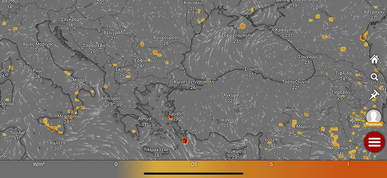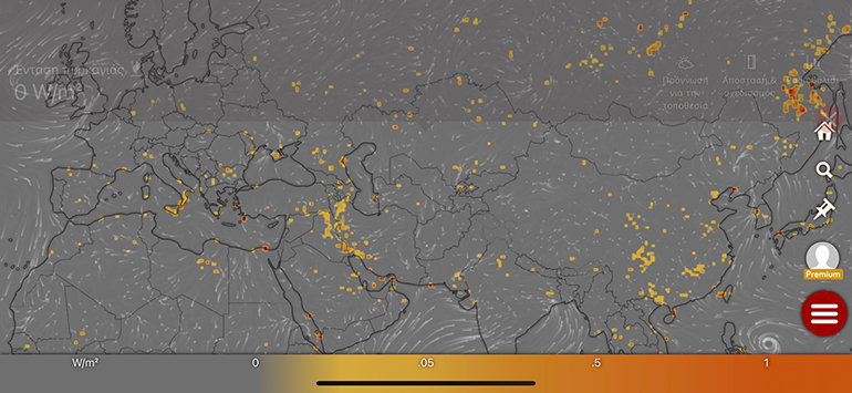 Ο δεύτερος χάρτης τα πύρινα μέτωπα στην Ελλάδα, την Ιταλία και την Τουρκία. Όπως μπορούμε να παρατηρήσουμε τα πιο έντονα εντοπίζονται στη Σμύρνη, τη Ρόδο και τη Μεσσήνη στην Ιταλία.