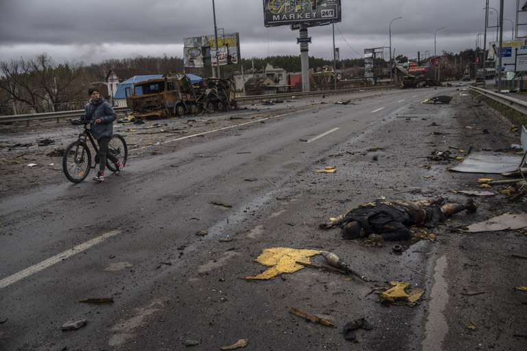 Devastation and bodies of killed civilians lying in the streets. Just over a month ago this was a prosperous Kyiv suburbpic.twitter.com/Q9CCZO4yW3