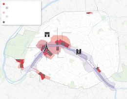 Η Place de la Concorde, η μεγαλύτερη δημόσια πλατεία της πόλης, έχει δημιουργηθεί για αγώνες ποδηλασίας BMX, skateboard και breakdancing, μια γαλλική προσθήκη στους Αγώνες. Γήπεδα μπιτς βόλεϊ σκεπασμένα με άμμο απλώνονται μπροστά από τον Πύργο του Άιφελ. Οι τοξότες θα ρίξουν τα βέλη τους στα Invalides, ένα στρατιωτικό συγκρότημα του 17ου αιώνα που στεγάζει τον τάφο του Ναπολέοντα.