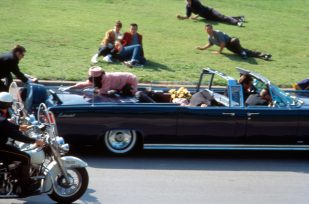 Ο JFK σκοτώθηκε από έναν ελεύθερο σκοπευτή, τον Lee Harvey Oswald, στο Ντάλας τον Νοέμβριο του 1963, ενώ βρισκόταν σε αυτοκινητοπομπή με μια ανοιχτή λιμουζίνα. Ο Όσβαλντ, ένας Σοβιετικός υποστηρικτής, συνελήφθη λίγες ημέρες μετά τους πυροβολισμούς. Ο ίδιος ο Όσβαλντ σκοτώθηκε από τον Τζακ Ρούμπι στο υπόγειο του αστυνομικού τμήματος του Ντάλας.
