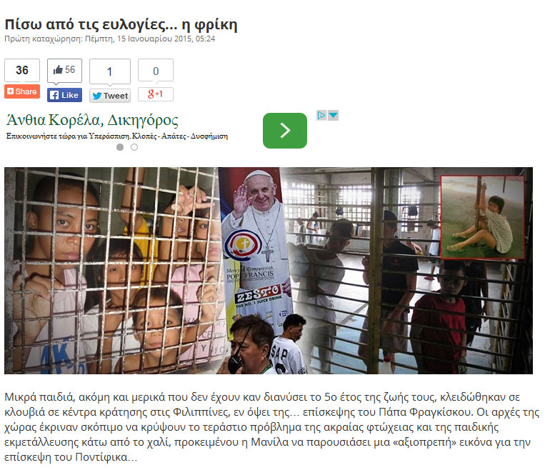 Κατά τη διάρκεια παραμονής του στις Φιλιππίνες ο Πάπας Φραγκίσκος Α’ συνομίλησε με παιδιά, τα οποία οι γονείς τους τα είχαν παρατήσει στον δρόμο καθώς αδυνατούσαν να τα φροντίσουν.