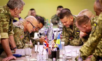 Ουκρανοί, Αμερικανοί και Βρετανοί στρατιωτικοί ηγέτες κατά τη διάρκεια συνάντησης στην Ουκρανία τον Αύγουστο του 2023