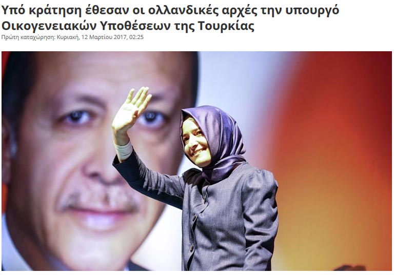 Στο δρόμο της επιστροφής για τη Γερμανία βρίσκεται, ήδη, η υπουργός Οικογενειακών υποθέσεων της Τουρκίας, Φατμά Μπετούλ Σαγιάν Καγιά.