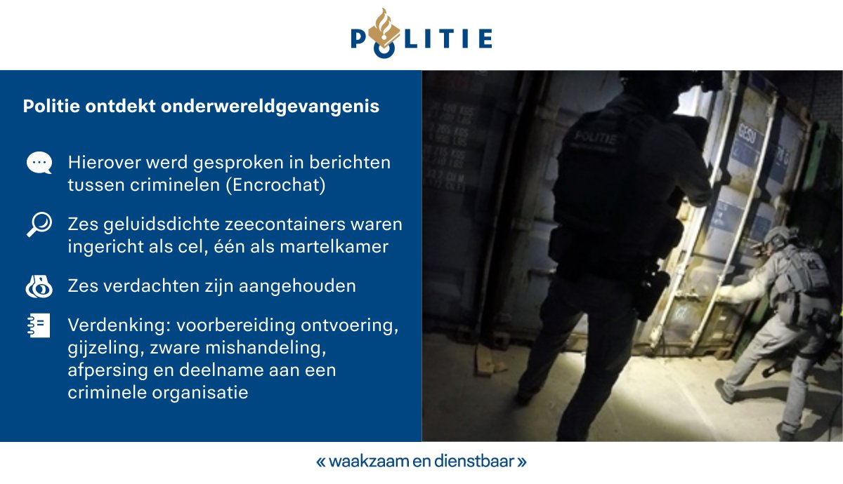 Η ολλανδική αστυνομία ανακοίνωσε ότι βρήκε ένα κοντέινερ το οποίο είχαν μετατρέψει κακοποιοί σε θάλαμο βασανιστηρίων για ανακρίσεις, καθώς ήταν εξοπλισμένο με οδοντιατρική καρέκλα για να δένουν τους κρατούμενούς τους και είχε ηχομόνωση για να μην ακούγονται οι κραυγές τους.