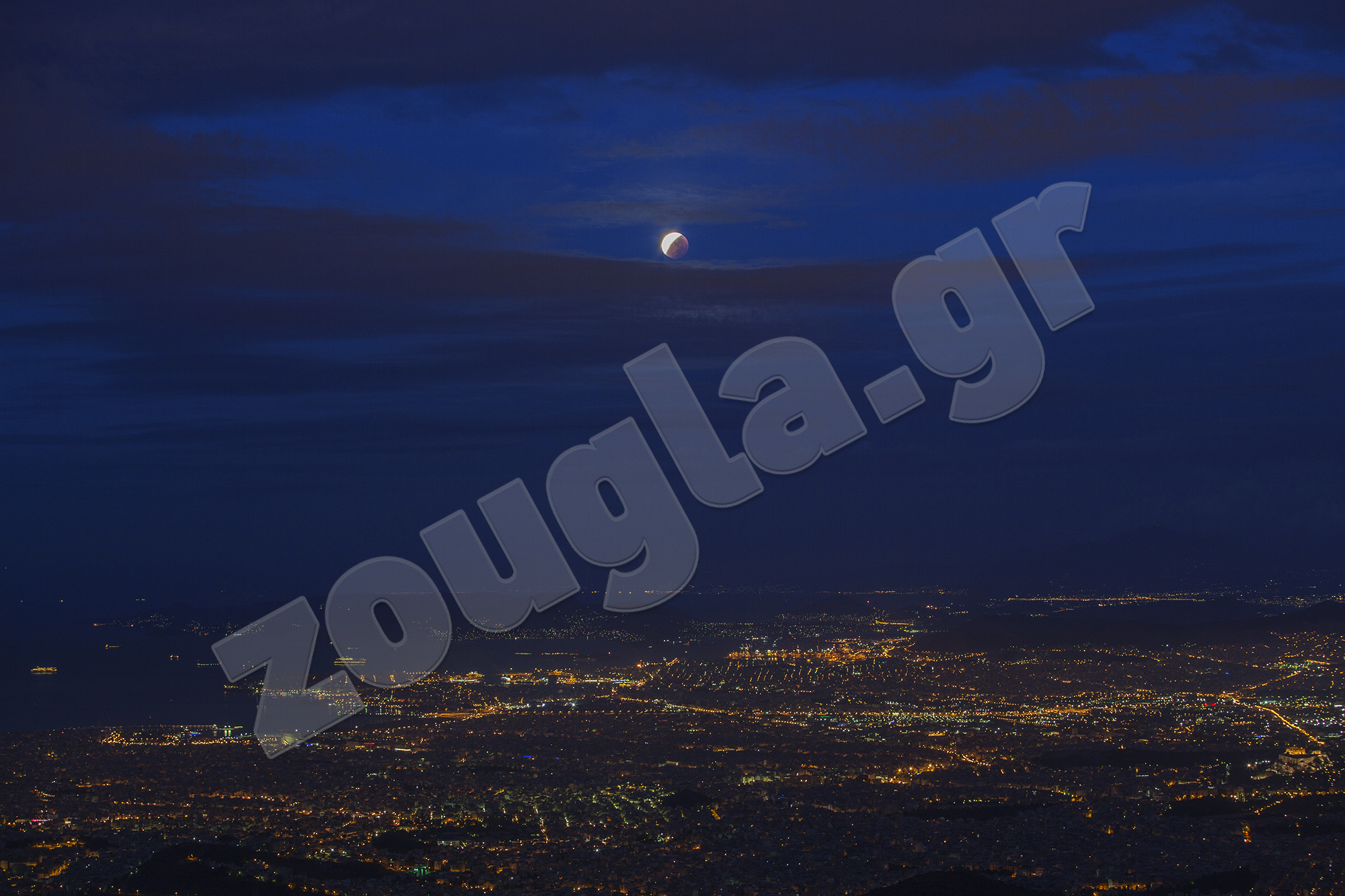 Ο λόγος για την ολική έκλειψη Υπερπανσελήνου, η οποία ήταν ορατή από τη χώρα μας λίγο πριν από την ανατολή του Ήλιου, με τη μερική φάση της έκλειψης να ξεκινά στις 04.07 τα ξημερώματα, όταν η Σελήνη εισήλθε βαθμιαία στη σκιά του πλανήτη μας.