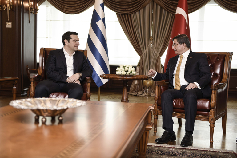 Αιγαίο, Κυπριακό και προσφυγικό βρέθηκαν στην ατζέντα των συζητήσεων Τσίπρα Νταβούτογλου«Το μέλλον των ελληνοτουρκικών σχέσεων περνά μέσα από μεγάλες προκλήσεις» τόνισε ο πρωθυπουργός Αλέξης Τσίπρας στις κοινές δηλώσεις του με τον Τούρκο ομόλογό του, κατά τη συνέντευξη Τύπου που ακολούθησε του Συμβουλίου.