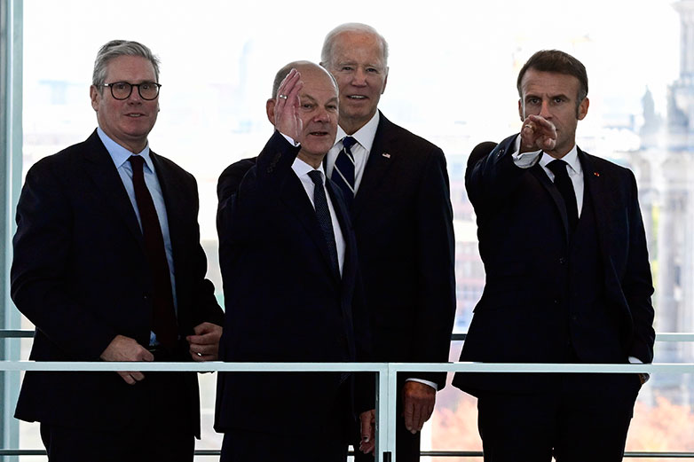 Κατά τις κοινές δηλώσεις, πρώτα με τον ομοσπονδιακό πρόεδρο Φρανκ-Βάλτερ Σταϊνμάιερ και κατόπιν με τον καγκελάριο Όλαφ Σολτς, αναδείχθηκε η αμοιβαία εκτίμηση για την κοινή πορεία στην στήριξη της Ουκρανίας. Με το βλέμμα μάλιστα στις προεδρικές εκλογές του Νοεμβρίου, ο κ. Σταϊνμάιερ δήλωσε ότι η στήριξη θα συνεχιστεί, «ό,τι και αν γίνει», ενώ ο κ. Σολτς έκανε λόγο για συνέχιση της παροχής βοήθειας, «για όσο χρειαστεί».