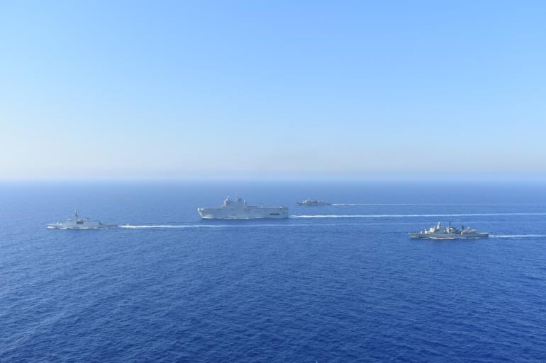 «Αναλαμβάνω πλήρως αυτό που κάναμε φέτος το καλοκαίρι, που ήταν απλά να συνοδεύουμε με ανάλογες πράξεις τα λόγια», εξήγησε ο Μακρόν. Το Παρίσι ανέπτυξε στα μέσα Αυγούστου δύο πολεμικά πλοία και δύο αεροσκάφη Rafale για να στηρίξει την Ελλάδα που καταγγέλλει «παράνομες» τουρκικές έρευνες για υδρογονάνθρακες στα ύδατά της.