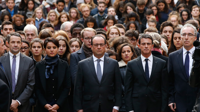 «Η Γαλλία είναι σε πόλεμο. Ο εχθρός μας στη Συρία είναι το Ισλαμικό Χαλιφάτο» τόνισε ο κ. Ολάντ και επιβεβαίωσε ότι η χώρα του θα κλιμακώσει τις επιδρομές στη Μέση Ανατολή«Οι τρομοκράτες πιστεύουν ότι οι ελεύθεροι άνθρωποι μπορούν να εκφοβιστούν. Η δημοκρατία θα τους αγνοήσει. Πυροβολώντας άοπλους πολίτες έδειξαν πόσο δειλοί είναι» σημείωσε ενώ υπογράμμισε ότι «χρειάζεται χρόνος και υπομονή για την πάταξη των τρομοκρατών».