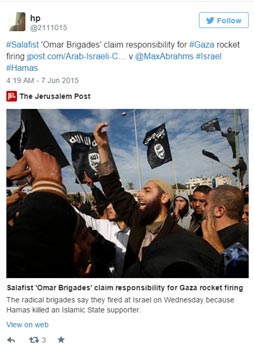 Εξάλλου, η Χαμάς φέρεται να συνέλαβε και να εκτέλεσε έναν από τους αρχηγούς της αντίπαλης οργάνωσης, ενώ σημερινή ανάρτηση σε λογαριασμό Twitter, που πιστεύεται ότι ανήκει στις Ταξιαρχίες του Ομάρ, αναφέρει ότι η τελευταία επίθεση έγινε σε ένδειξη διαμαρτυρίας για τη φυλάκιση τζιχαντιστών στη Γάζα.