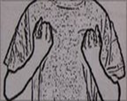 Η λέξη «κορίτσι» γίνεται αντιληπτή με την τοποθέτηση των τριών πρώτων δακτύλων στο ύψος του στήθους με φορά προς τα πάνω προκειμένου να σχηματίζονται νοητικά τα μακριά μαλλιά που παραπέμπουν στο γυναικείο φύλο. Καθώς όμως αρκετές από τις γυναίκες στην αφρικανική χώρα συνηθίζουν να έχουν κοντά μαλλιά, η χειρονομία τροποποιείται και πλέον σχηματίζεται με τα δύο χέρια να ακουμπούν το στήθος με τους αγκώνες προς τα κάτω και σε κλειστή θέση.