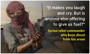 «Είναι να γελάς και να κλαίς, αλλά ποιος άλλος σου πουλάει καύσιμα;» λέει ένας από τους διοικητές των αντικαθεστωτικών ανταρτών στη Συρία που αγοράζει ντίζελ από το ΙΧ.