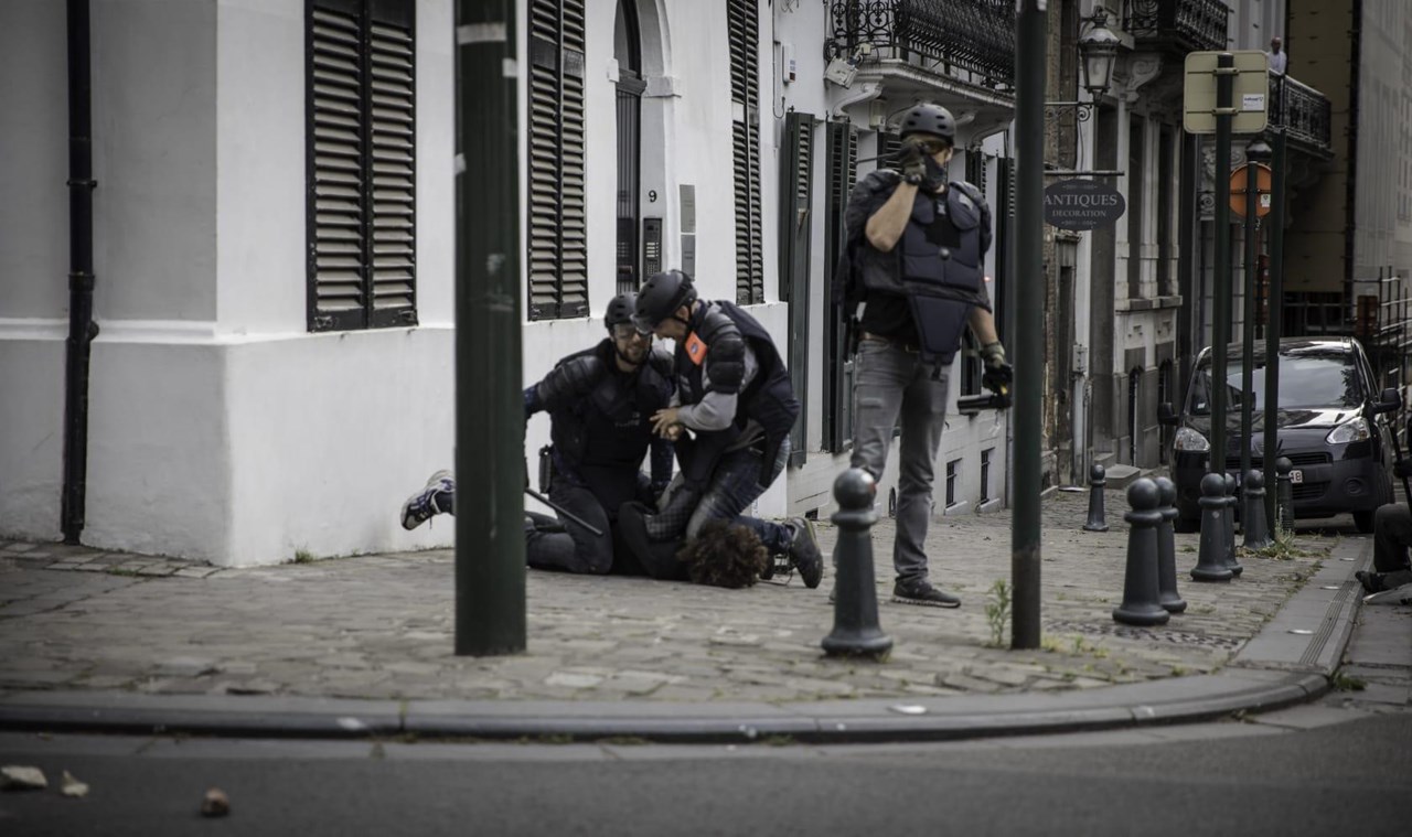 Το στιγμιότυπο δημοσιοποίησε ο αγγλόφωνος ιστότοπος των Βρυξελλών Brussels Times και τραβήχτηκε κατά τη διάρκεια των επεισοδίων που ξέσπασαν μετά την αντιρατσιστική διαδήλωση της περασμένης Κυριακής.