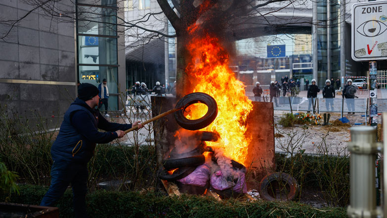 #BREAKING – 🚨🇧🇪Protests and fires outside the #European Parliament as heads of state and government meet at the #EU summit in #Brussels. #Farmers #farmerprotests2024 pic.twitter.com/rAUW3dn3Yo