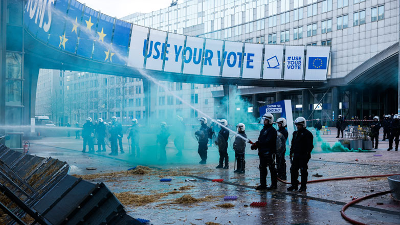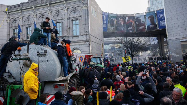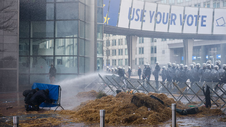 Σύμφωνα με την βελγική αστυνομία περισσότερα από 1.300 τρακτέρ έχουν περικυκλώσει το Ευρωκοινοβούλιο, με τις αστυνομικές δυνάμεις να προσπαθούν να τους εμποδίσουν να πλησιάσουν περισσότερο, από την απόσταση των 500 μέτρων.