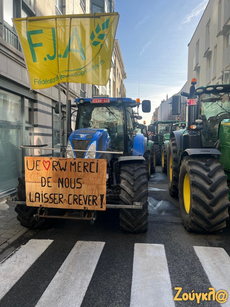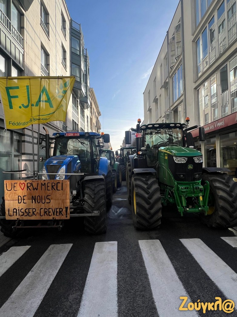 Σε απόσταση 500 μέτρων από το Ευρωπαϊκό Κοινοβούλιο των Βρυξελλών, έχουν φθάσει πλεον οι αγρότες του Βελγίου, της Ιταλίας, της Πορτογαλίας και άλλων ευρωπαϊκών χωρών που διαδηλώνουν με οργή, διαμαρτυρόμενοι κατά των ευρωπαίων ηγετών που συναντώνται αυτή την ώρα στην προγραμματισμένη Σύνοδο Κορυφής.