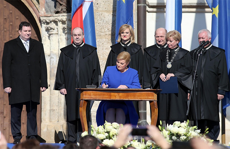 Μέσα σε πανηγυρικό κλίμα πραγματοποιήθηκε το μεσημέρι της Κυριακής η ορκωμοσία της Κολίντα Γκράμπαρ Κιτάροβιτς, της πρώτης γυναίκας προέδρου της Κροατίας.