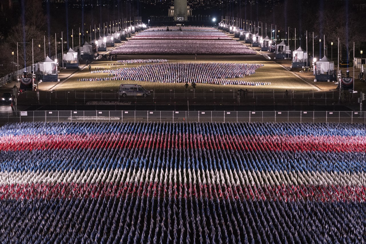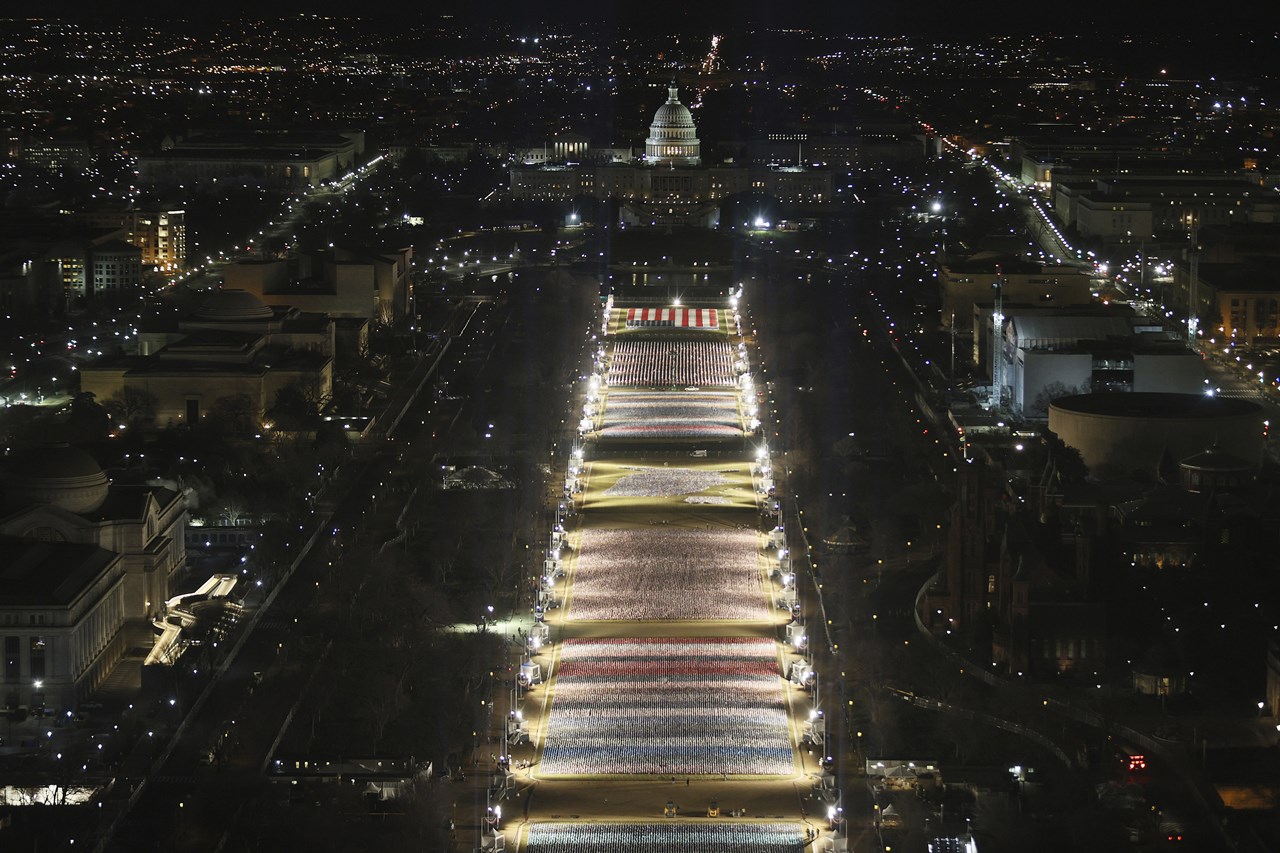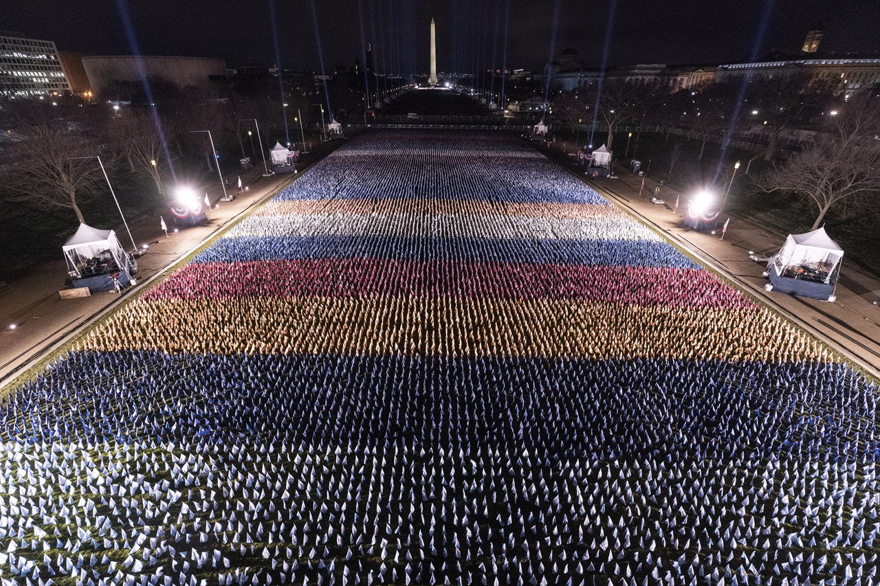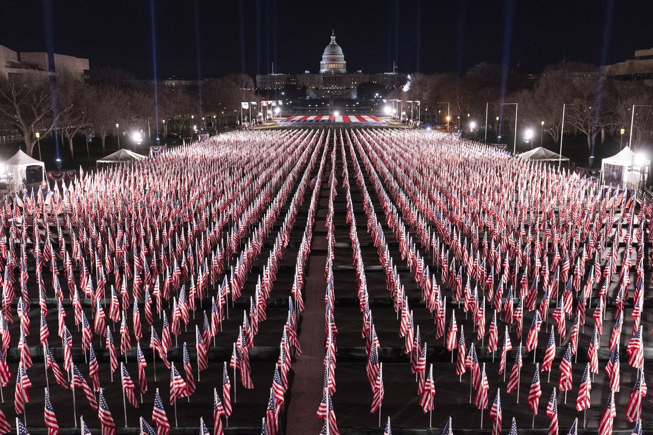 Εκατοντάδες χιλιάδες σημαίες των ΗΠΑ τοποθετήθηκαν ενόψει της ορκωμοσίας του Τζο Μπάιντεν στο εθνικό πάρκο της Ουάσινγκτον «National Mall», που βρίσκεται μεταξύ του Μνημείου του Λίνκολν στα δυτικά και του Καπιτωλίου στα ανατολικά.