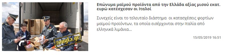Μόλις εχθές, η Αστυνομία Οικονομικού Εγκλήματος του Μπρίντιζι σε συνεργασία με την υπηρεσία τελωνειακών, κατάφεραν και ξεσκέπασαν άλλη μια διαδρομή «μαϊμού» προϊόντων τα οποία προέρχονταν από ελληνικό λιμάνι.
