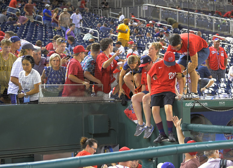 Players, including Fernando Tatis Jr. Just ran into stands and grabbed family members and brought them to clubhouse. pic.twitter.com/DlC1bSv3I7