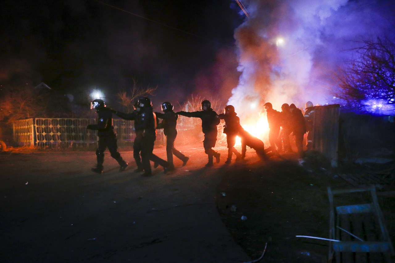 Άγρια επεισόδια ξέσπασαν τη νύχτα της Πέμπτης σε ένα χωριό στην κεντρική Ουκρανία, όπου μεταφέρονταν  72 πολίτες από την επαρχία Χουμπέι της Κίνας.