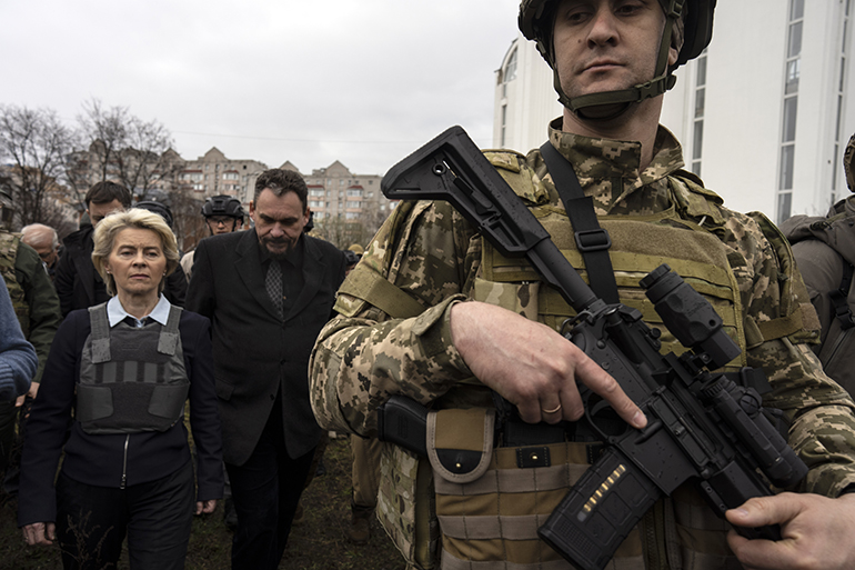 Η φον ντερ Λάιεν, η οποία συνοδεύεται από τον επικεφαλής της ευρωπαϊκής διπλωματίας, Ζοζέπ Μπορέλ, είχε ανακοινώσει ότι θα μεταβεί στο Κίεβο ως ένδειξη υποστήριξης στην Ουκρανία.