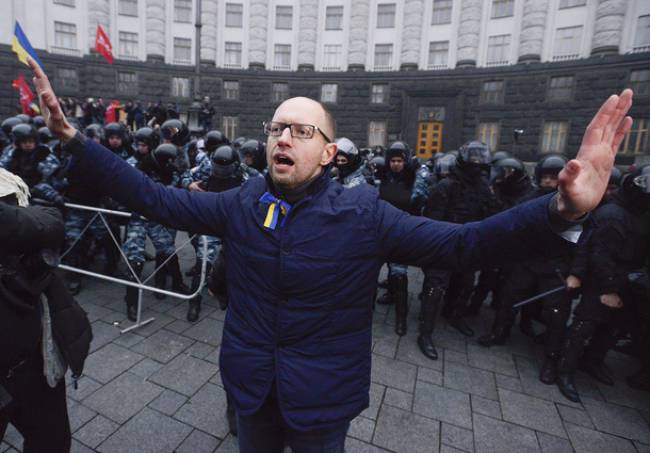 Αρσένι ΓιατσένιουκΟ 39χρονος Γιατσένιουκ, στέλεχος του κόμματος «Πατρίδα» της ηγερίας της Πορτοκαλί Επανάστασης Γιούλιας Τιμοσένκο ο οποίος στο παρελθόν έχει διατελέσει υπουργός Οικονομίας και Εξωτερικών της Ουκρανίας, τέθηκε επικεφαλής της κυβέρνησης εθνικής ενότητας η οποία θα κυβερνήσει τη χώρα μέχρι τη διεξαγωγή προεδρικών εκλογών στις 25 Μαΐου.