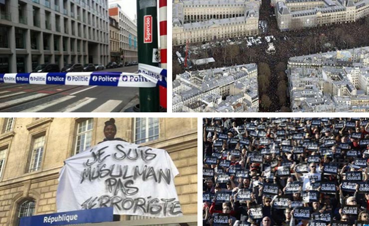 «Θα είναι εδώ την Κυριακή. Θα είμαι μαζί τους. Καλώ όλους τους Γάλλους να ενωθούν αυτή την Κυριακή για τις αρχές της δημοκρατίας, της ελευθερίας και του πλουραλισμού» είχε δηλώσει ο Γάλλος πρόεδρος στο σύντομο διάγγελμα που παραχώρησε μετά τον τριήμερο εφιάλτη και το πρωτοφανές κλίμα τρόμου στο οποίο βυθίστηκε η Γαλλία.