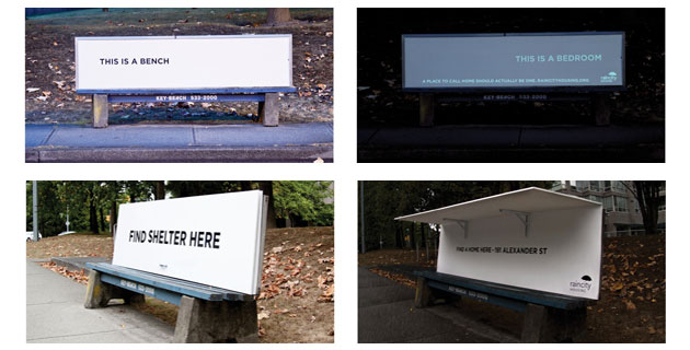 Μια εταιρεία που ειδικεύεται στη διαμονή και στις υπηρεσίες υποστήριξης για τους άστεγους στο Βανκούβερ του Καναδά δημιούργησε ένα «φιλόξενο» παγκάκι που μετατρέπεται εύκολα σε ένα πρόχειρο κατάλυμα.