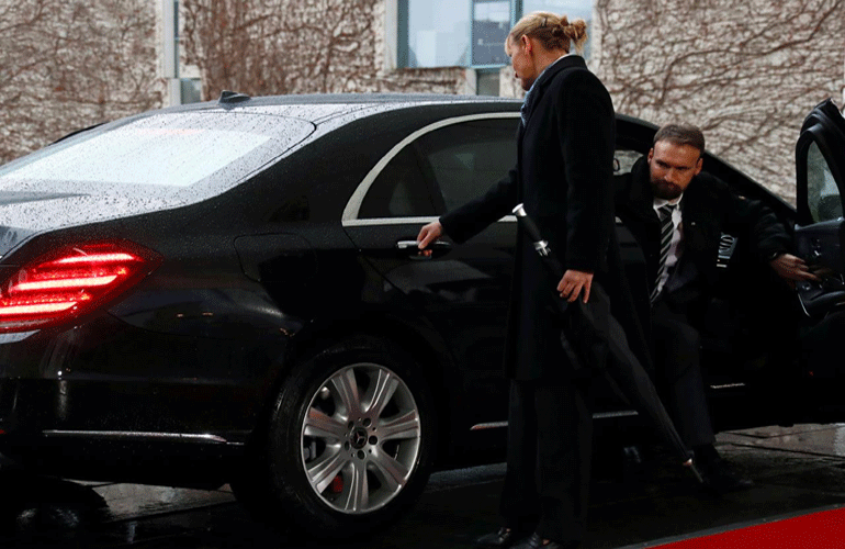 Το προσωπικό «έδωσε μάχη» με την πόρτα του αυτοκινήτου για περισσότερα από 10 δευτερόλεπτα προτού καταφέρουν να την ανοίξουν επιτρέποντας τελικά στην πρωθυπουργό της Βρετανίας να αποβιβαστεί και κατόπιν να ανταλλάξει χειραψία με την καγκελάριο της Γερμανίας, που την περίμενε υπομονετικά στο κόκκινο χαλί, στο Βερολίνο.