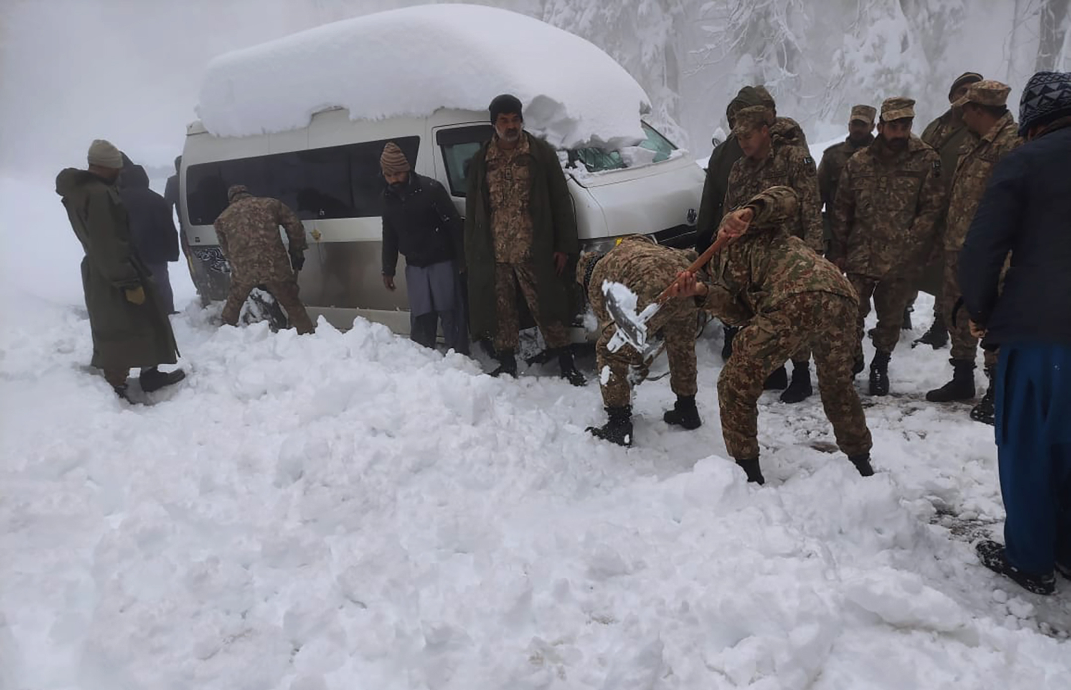 Οι πακιστανικές υπηρεσίες διάσωσης Rescue 1122 έδωσαν στη δημοσιότητα έναν κατάλογο 21 ανθρώπων που υπέκυψαν, μεταξύ των οποίων ένας αστυνομικός, η γυναίκα του και τα έξι παιδιά τους. Ο Χασαάν Χαουάρ, εκπρόσωπος της κυβέρνησης του Πουντζάμπ, διευκρίνισε πως κατέληξαν από το κρύο μέσα στο αυτοκίνητό τους.