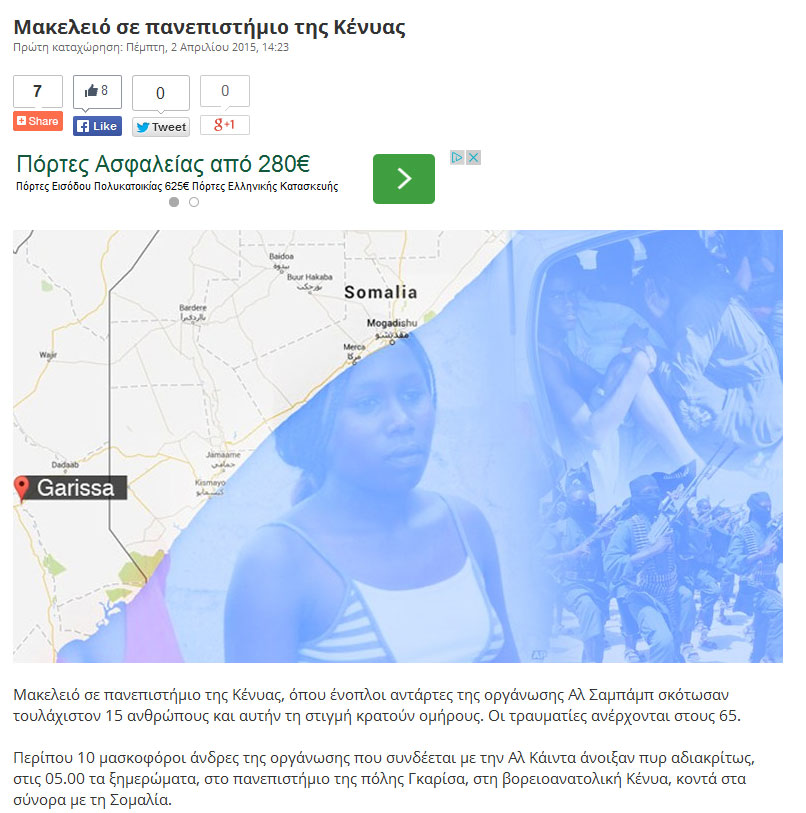Η φυγή των πανικόβλητων φοιτητών στο Κικούγιου αποτελεί άλλη μια χαρακτηριστική έκφραση της έντασης και του φόβου που επικρατεί στο αφρικανικό κράτος, μία εβδομάδα αφότου ένοπλοι εισέβαλαν στο Πανεπιστήμιο Γκαρίσα στο νότια τμήμα της χώρας. Στις 2 Απριλίου Σομαλοί αντάρτες της ισλαμιστικής οργάνωσης Αλ Σαμπάαμπ κατέλαβαν το κτηριακό συγκρότημα, που απέχει περίπου 200 χλμ. από τα σύνορα των δύο χωρών, κράτησαν όμηρους δεκάδες φοιτητές και υπαλλήλους και σκότωσαν συνολικά 148 ανθρώπους.