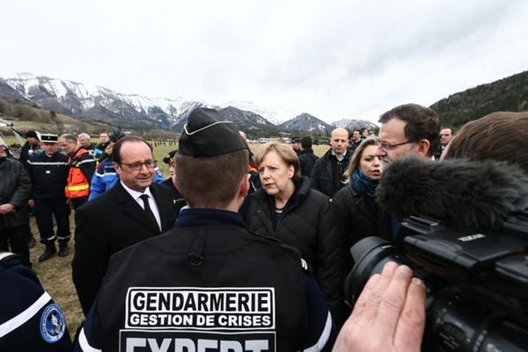 Στο σημείο της πολύνεκρης αεροπορικής τραγωδίας βρέθηκαν το μεσημέρι της Τετάρτης οι ηγέτες των χωρών της Γερμανίας, της Γαλλίας και της Ισπανίας.