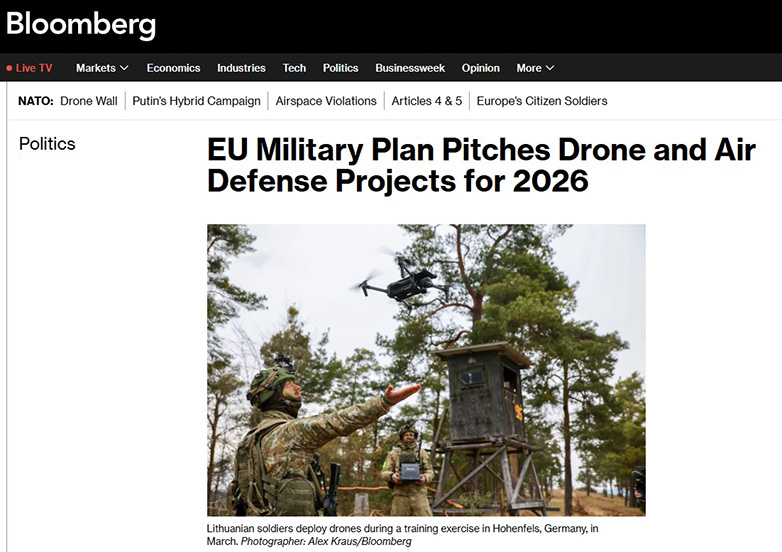 Επιπλέον, επιθυμεί τη δημιουργία νέων εμβληματικών προγραμμάτων που θα αφορούν drones, αντιαεροπορικά συστήματα και έναν «θόλο προστασίας». Οι πρωτοβουλίες αυτές περιλαμβάνουν προγράμματα όπως το «European Drone Defence», που θα αντλήσει εμπειρίες από τον πόλεμο στην Ουκρανία, και το «Eastern Flank Watch». Το σχέδιο προβλέπει την εκκίνησή τους το 2026.