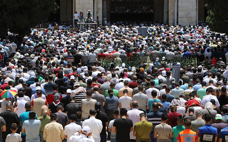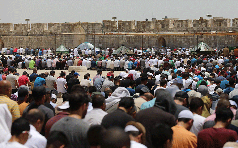 Σχεδόν 260.000 άνθρωποι κατέκλυσαν την Πλατεία των Τεμενών στην Παλιά Πόλη της Ιερουσαλήμ, σύμφωνα με τον Αζάμ αλ Χατίμπ, τον γενικό διευθυντή της Waqf, του ιδρύματος που έχει αναλάβει τη διοίκηση του ιερού χώρου.