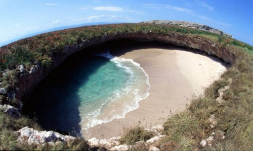 Όταν η φύση έχει κέφια δημιουργεί τοπία σαν αυτό. Πρόκειται για μια πολύ εντυπωσιακή εικόνα, μια κρυμμένη παραλία στα νησιά Μαριέτα, στην ακτή Πουέρτο Βαγιάρτα, στο Μεξικό! Φαίνεται σαν να κατέρρευσε η οροφή του βουνού δημιουργώντας μια υπέροχη, ιδιωτική παραλία!