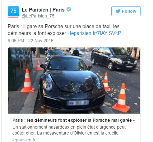 Στο Παρίσι όμως, το προκλητικά παράνομο παρκάρισμα μπορεί να έχει ολέθριες συνέπειες για το αυτοκίνητο.