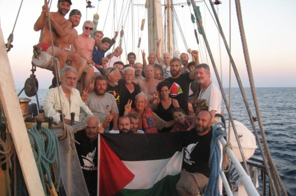 Στο ιστιοφόρο επιβιβάστηκαν την περασμένη Τρίτη (εν πλω στα διεθνή ύδατα, 12 μίλια νότια της Κρήτης) πέντε Έλληνες, μεταξύ των οποίων δύο βουλευτές του ΣΥΡΙΖΑ, οι κ.κ. Βαγγέλης Διαμαντόπουλος και Δημήτρης Κοδέλας.