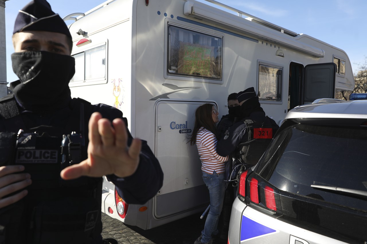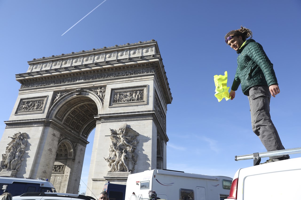 Οχήματα με διαδηλωτές κατάφεραν να περάσουν από τα σημεία ελέγχου της αστυνομίας στο κέντρο του Παρισιού εμποδίζοντας την κυκλοφορία περιμετρικά της Αψίδας του Θριάμβου.
