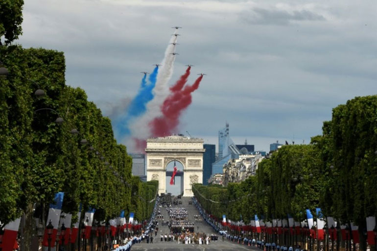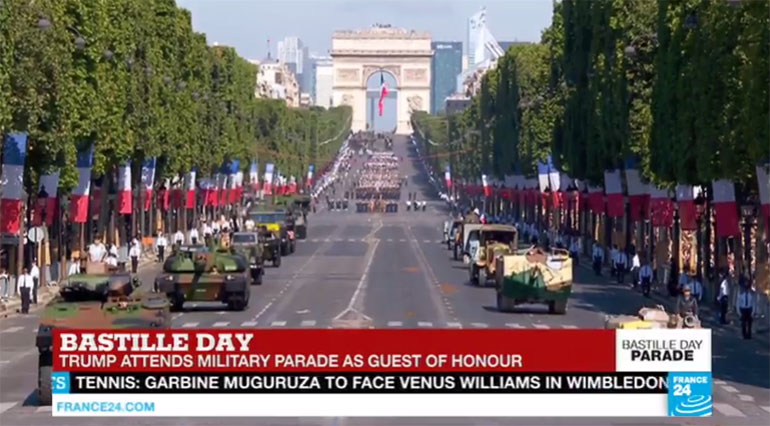 Παρουσία του προέδρου των ΗΠΑ Ντόναλντ Τραμπ και του Γάλλου ομολόγου του Εμανουέλ Μακρόν, πραγματοποιήθηκε σήμερα στο Παρίσι η παραδοσιακή στρατιωτική παρέλαση στη λεωφόρο των Ηλυσίων Πεδίων με την ευκαιρία της γαλλικής εθνικής γιορτής της 14ης Ιουλίου.