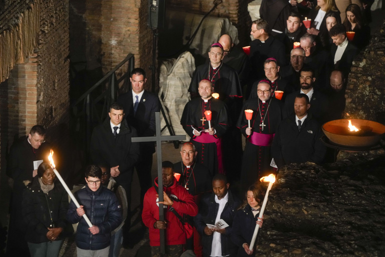Σε εξέλιξη βρίσκεται, στη Ρώμη, η θρησκευτική τελετή της “Οδού του Σταυρού”, της Μεγάλης Παρασκευής των Καθολικών.