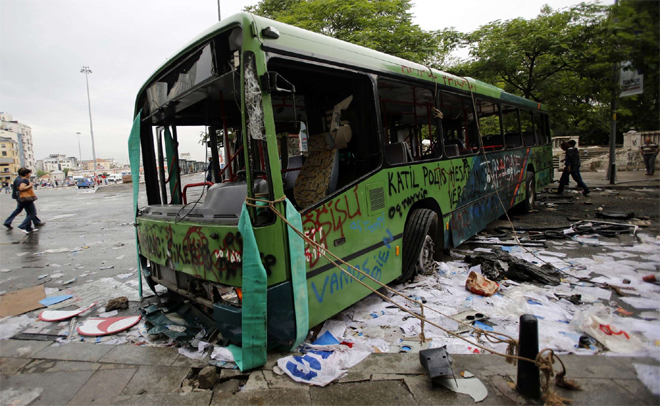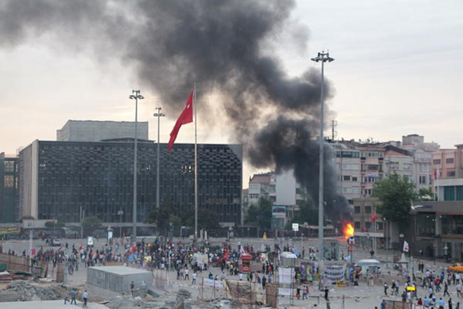 Εικόνες που θυμίζουν περισσότερο βομβαρδισμένο τοπίο αποκαλύφθηκαν με το πρώτο φως της ημέρας στην Τουρκία, μετά τα βίαια επεισόδια που σημειώθηκαν τις τελευταίες δύο ημέρες στην πλατεία Ταξίμ της Κωνσταντινούπολης.